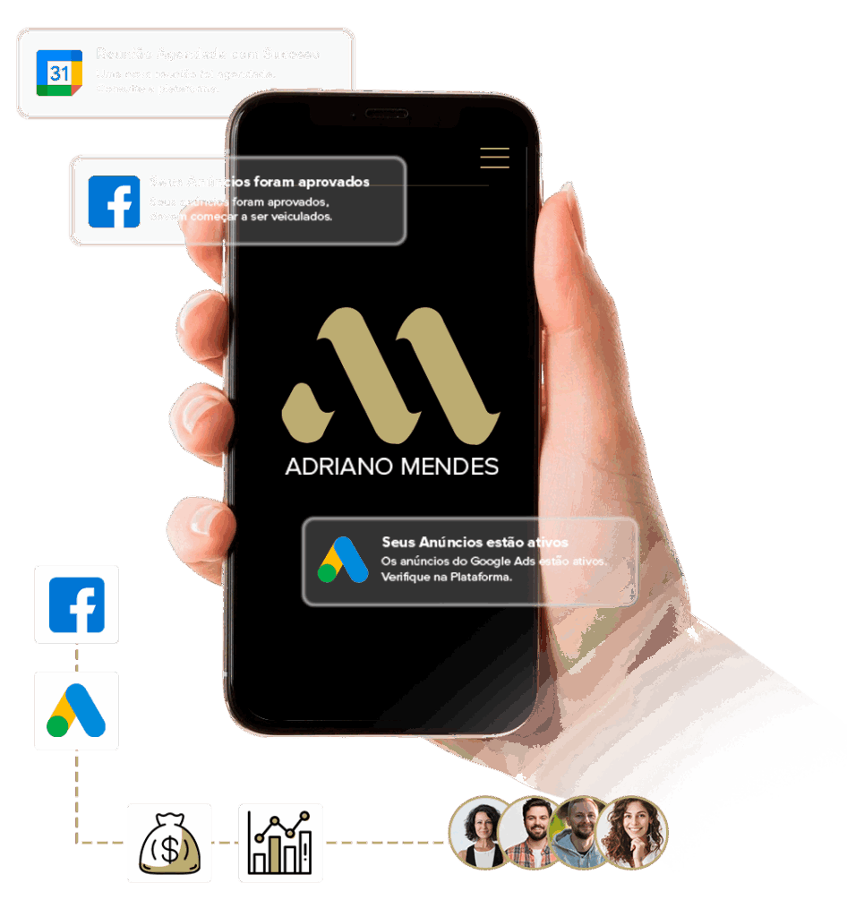 Meu nome é Adriano Mendes, especialista em anúncios online, e meu objetivo é simples: colocar o seu negócio na frente das pessoas certas, no momento certo. Através de estratégias de tráfego pago, ajudo empresas locais a atrair mais clientes, aumentar as vendas e crescer de forma previsível e escalável.